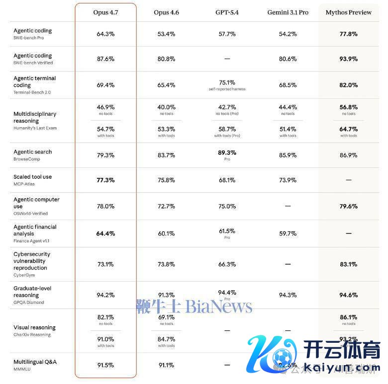 科研与多谈话,在Graduate-level reasoning测试中,Opus 4.7达到 94.2%,与GPT-5.4 Pro的94.4%和Gemini 3.1 Pro的94.3%处于吞并梯队;多谈话问答(MMMLU)也擢升至91.5%。