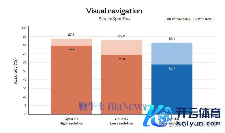 在CharXiv视觉推理基准测试中,Opus 4.7的得分从4.6的 69.1% 跃升至 82.1%;合作器具使用时,更是达到了91.0%,相较于前代的84.7%擢升弘大。